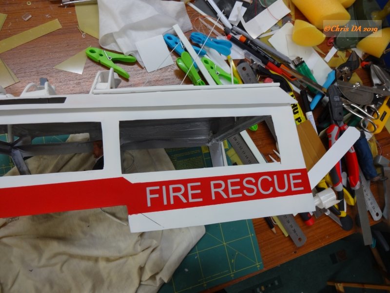 Am Rumpf wurden dann verschiedene Hilfslinien an gezeichnet, zB für die Montage der Aussenborder