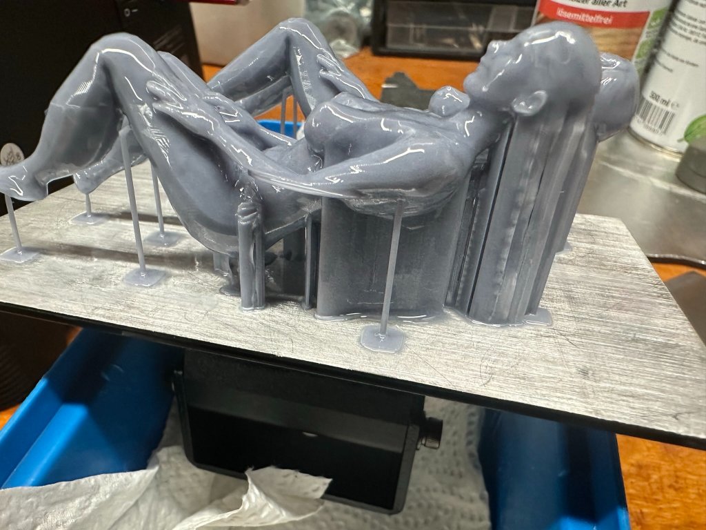 Gestern hatte ich eine Figur drucken wollen, die sich aber nicht vom Boden des Resinbehälters gelöst hat und abgerissen wurde.